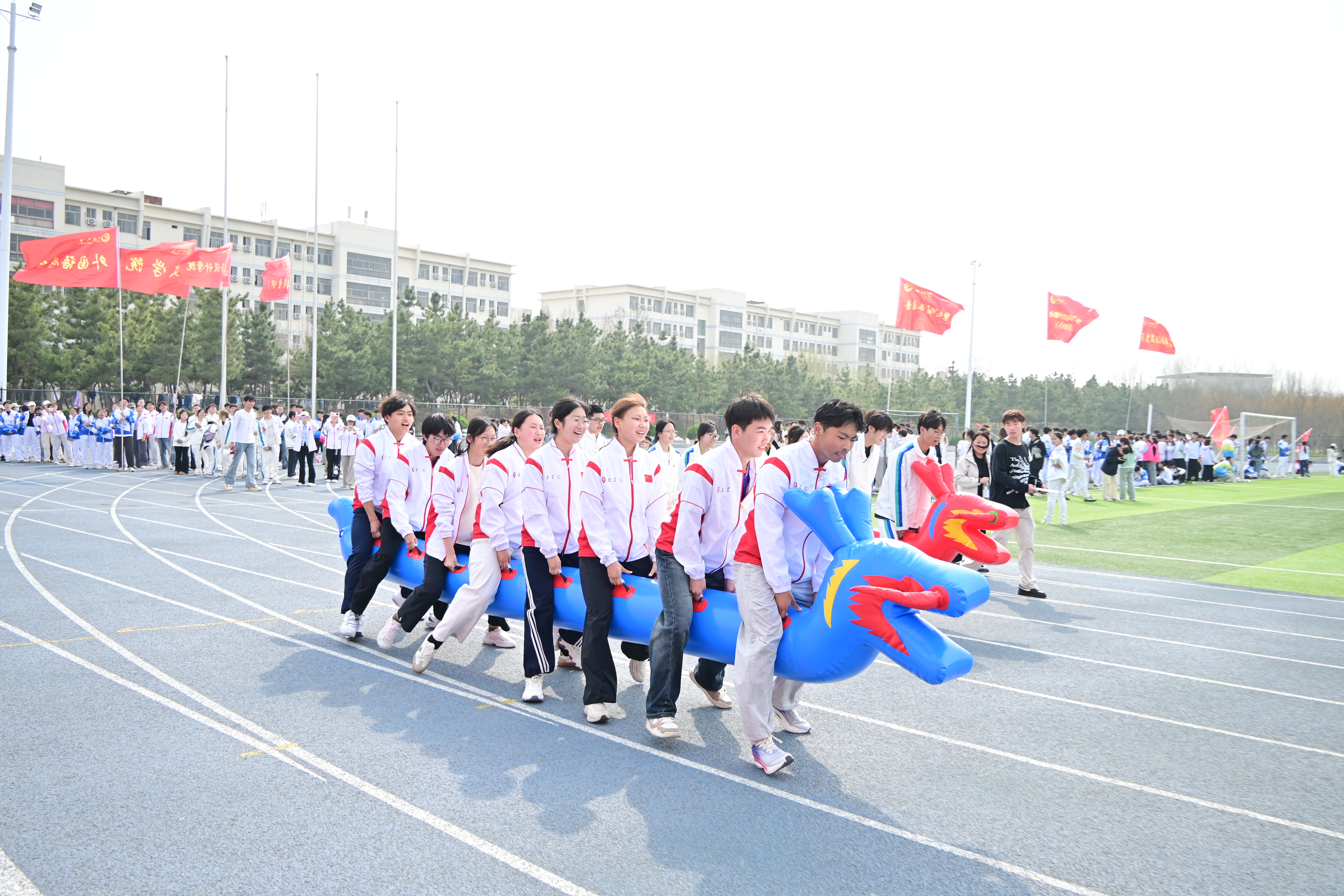 现场彩烟升腾、气球飞扬,气氛热烈、青春昂扬。旱地龙舟、击鼓颠球、鸿运通天、长条毛毛虫、滚滚向前、球类大作战六大特色项目轮番上阵。各参赛队伍默契配合、激烈角逐、奋勇争先,歌声、笑声、加油声此起彼伏,汇成一片欢乐的海洋。