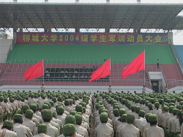 9月8日,我校在南校区体育场召开了2004级新生军训动员大会。校长宋益乔,校党委副书记、军训领导小组组长王昌松,聊城军分区副司令员陈昌亚,东昌府区武装部部长李松立,武警聊城支队副参谋长管遵臣,承训部队济南军区某部防空旅帮训教官、军训团副团长刘世浩、赵友发及我校有关部门和各学院负责人出席了大会并在主席台就座。王昌松代表校党委、行政作动员报告。会议由我校武装部部长、军训团团长王刚主持。