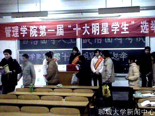1月3日,管理学院871名本专科学生利用考试的间隙进行投票选举,选出了本院首届“十大明星学生”。这是管理学院于今年5月份推出的“每周一星”评选活动的年度总评。
