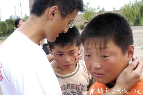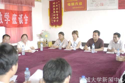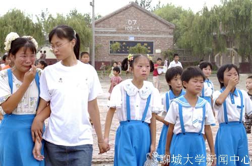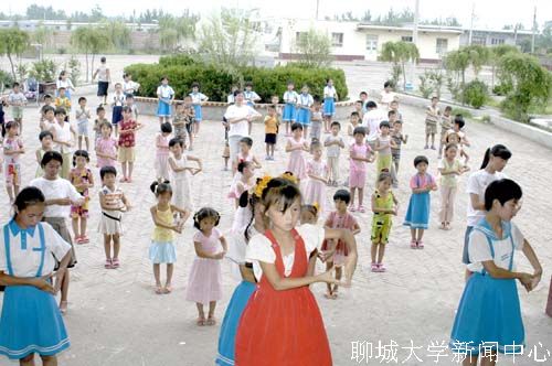 7月20日,文学院组织聊城东关小学、北顺小学的优秀教师代表赴五里墩繁森希望小学,与当地教师研讨小学教育教学问题并看望了那里的孩子们。孩子们进行了演讲、朗诵、歌唱以及《感恩的心》手语表演等精彩的汇报演出。