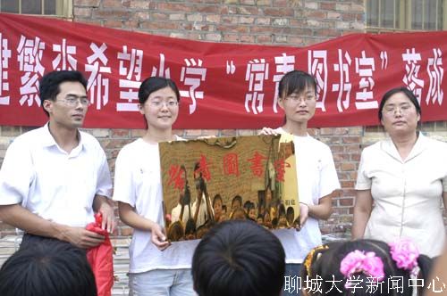 活动当天,该院捐赠一千余册图书,为孩子们设立了“常青”图书室。文学院分团委书记秦治洲、繁森希望小学校长郭凤云共同为图书室揭牌。