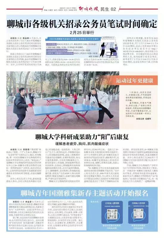 “我需要‘核能润心’调理一下!”1月28日,聊城大学一位老师“阳”后感到乏力、胸闷、肌肉酸痛,第一时间向聊城大学生物制药研究院临床营养研究中心求助。“核能润心”是聊城大学生物制药研究院临床营养研究中心以D-核糖为主要活性物质完成的一项科研成果产业转化,临床试验证明,这项科研成果能够有效减轻新冠病毒感染者身体的疲劳程度,改善其睡眠质量。