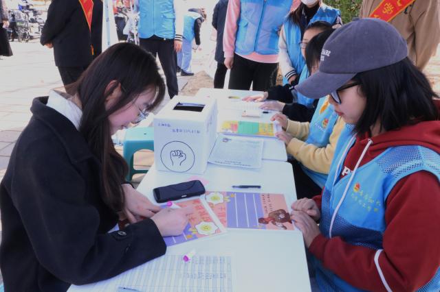 农学与农业工程学院组织青年学生在校园和街道社区开展“文明齐停 助力创城”志愿服务,志愿者们合理规划齐停区域,将乱停乱放车辆整齐摆放在停车区域,并提醒过往车辆文明齐停;化学化工学院组织“践行雷锋精神,研途志愿同行“爱心释压活动,志愿者将手工爱心贺卡投入爱心释压箱,在签名墙上用温暖的祝福、多彩的画笔描绘对学长学姐们“一战成硕”的美好祝愿与期盼。