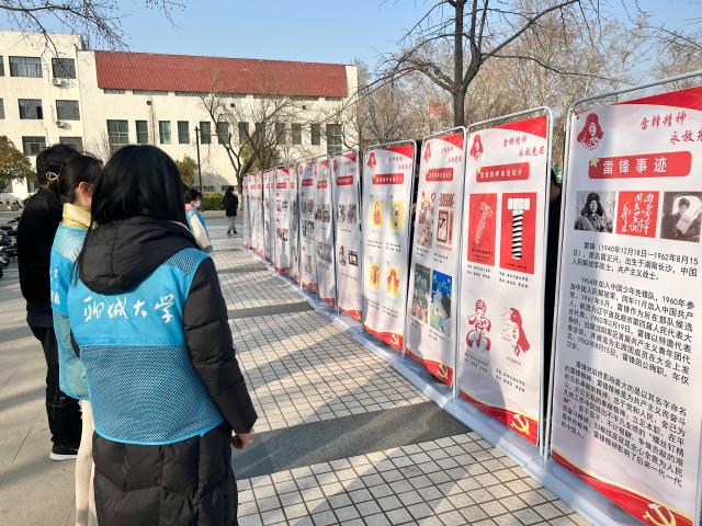 马克思主义学院、体育学院联合开展以“弘扬雷锋精神,争做时代先锋”青年思享汇校园研学活动,引导广大青年学子将忘我奉献的雷锋精神与艰苦奋斗的优良传统有机融合进日常学习和生活中;传媒技术学院、美术与设计学院发挥专业特长,组织“向雷锋同志学习”主题文化展示活动。以“雷锋精神”为创作主题,运用设计艺术的语言挖掘、传播雷锋精神。书法作品力透纸背,通过笔墨纸砚,以传统文化艺术的形式书写着青年学子心中的雷锋精神。