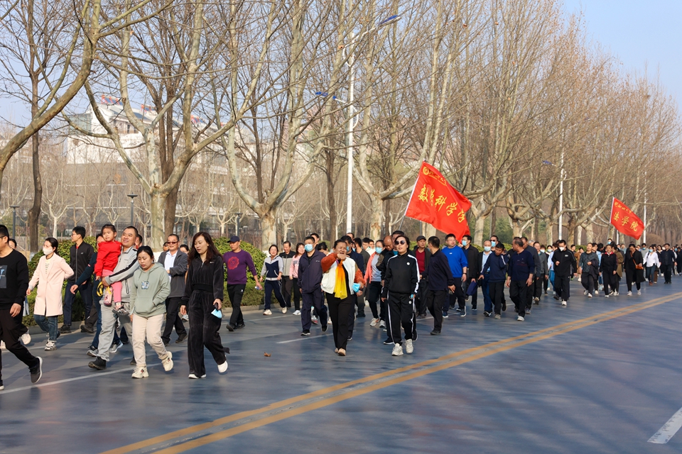 春和景明,万物勃发。3月8日下午,全校800余名教职工参加由校工会组织的健步走活动,共同庆祝第113个“三八”国际妇女节。校党委书记关延平,党委副书记兼统战部部长胡海泉,党委副书记房增福,党委常委、副校长李兆俊,党委常委、宣传部部长苏明海与大家畅快举步。