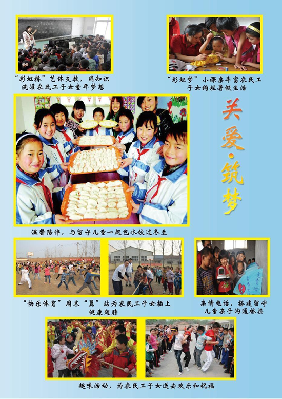 “我们会一直守护在他们身边,为他们带去快乐和健康”,这是雷锋义工队对农民工子女的承诺。“彩虹姐姐”、“快乐哥哥”早已成为鲁西农村地区的农民工子女送给雷锋义工队队员们最亲切的称呼。2004年,雷锋义工队设立了农民工子女“彩虹梦”小课桌、“彩虹桥”艺体支教等志愿服务项目,队员们每年要分组奔赴13所农民工子女学校开展音体美课堂教学和丰富多彩的课外活动,每个寒暑假会准时守候在爱心服务基地,为他们送去为期一个月的学业辅导、自护教育和心理疏导服务。2011年,雷锋义工队“快乐体育”周末“翼”站项目启动,队员们每个周末会深入10个村镇,义务为3000余名农民工子女提供课外体育锻炼技能指导,开发青少年乡土体育项目,开展丰富多彩的阳光体育活动,为他们插上“快乐”和“健康”的翅膀。2014年12月,该项目参加了由共青团中央、中国志愿服务联合会等共同主办的首届中国青年志愿服务项目大赛,在团中央38个参赛单位的1500个参赛项目中脱颖而出,荣获全国银奖。坚守11年的“彩虹”系列和“快乐”系列志愿服务项目,累计服务超过10000小时,不仅为农民工子女送去了悉心照料和耐心陪伴,也逐步成为鲁西地区关爱农民工子女志愿服务活动的代名词。
