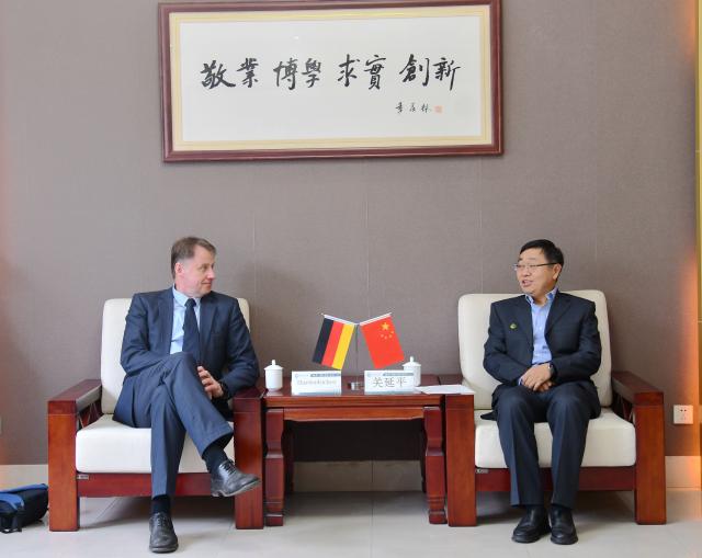 4月23日,德国卡尔·杜伊斯堡公益中心总经理哈登比克一行来我校洽谈国际教育合作事宜。校党委书记关延平,校党委常委、副校长白成林会见了来访客人。