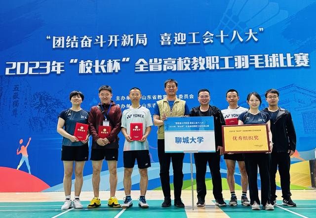 5月12日,由山东省教育工会委员会主办的2023年“校长杯”全省高校教职工羽毛球比赛在山东农业大学体育馆落下帷幕,我校杨希军、周涛获男子双打(40岁以上)亚军,宋玉红获女子单打(40岁以上)季军,魏征获男子单打(40岁以上)第五名,我校荣获“优秀组织奖”。