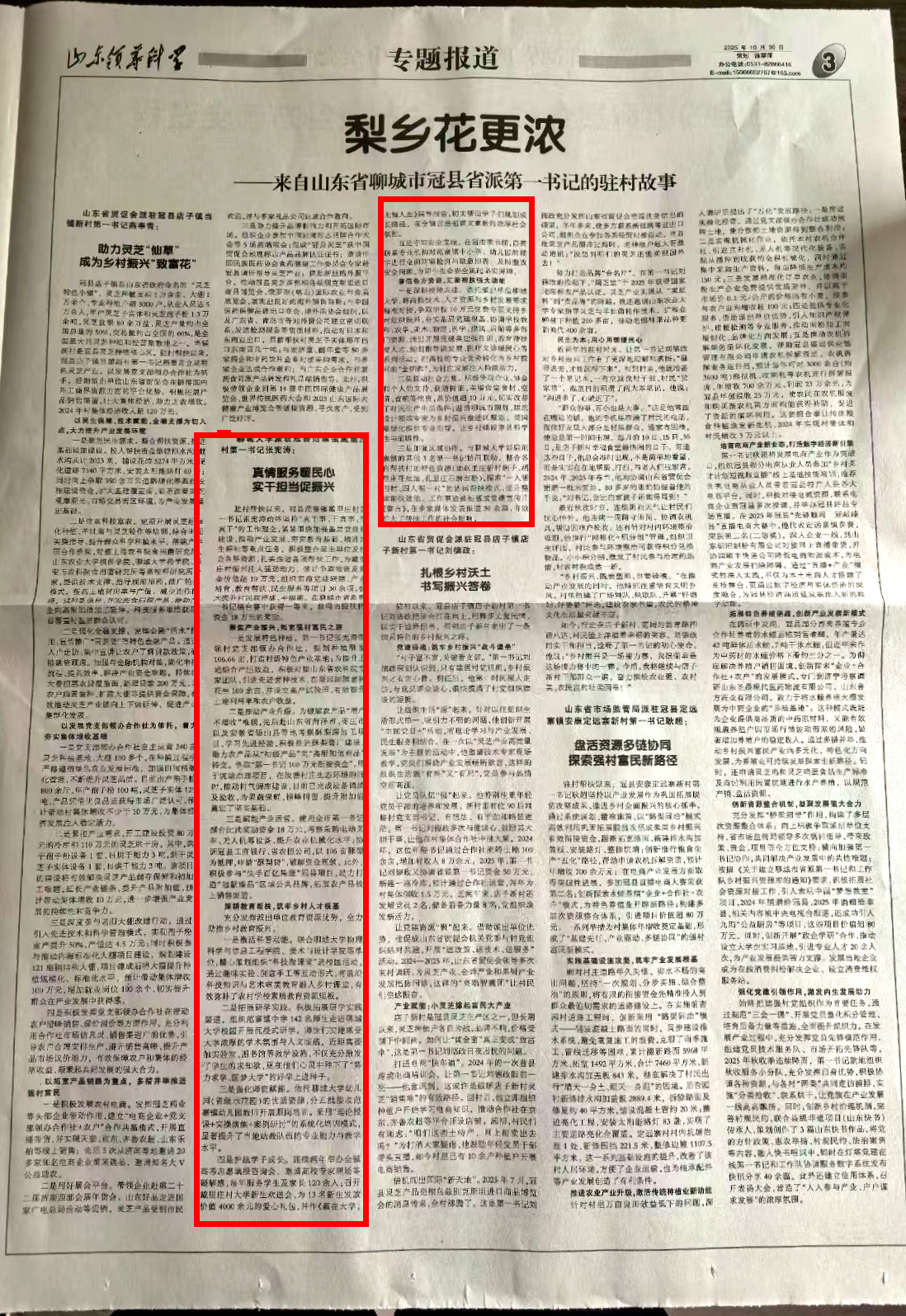 【编者按】10月30日,【山东领导科学】以《聊城大学派驻冠县范寨镇戴里庄村第一书记张宪涛:真情服务暖民心 实干担当促振兴》为题,专题报道了驻村第一书记张宪涛的帮扶事迹。 文中阐述了张宪涛聚焦基层党建、产业振兴、教育帮扶、民生福祉四大重点开展驻村帮扶,积极整合派出单位及社会各界资源,扎实推进各项帮扶工作,为戴里庄村振兴注入强劲动力,实现了良好的经济效益,提升了村民获得感、幸福感。