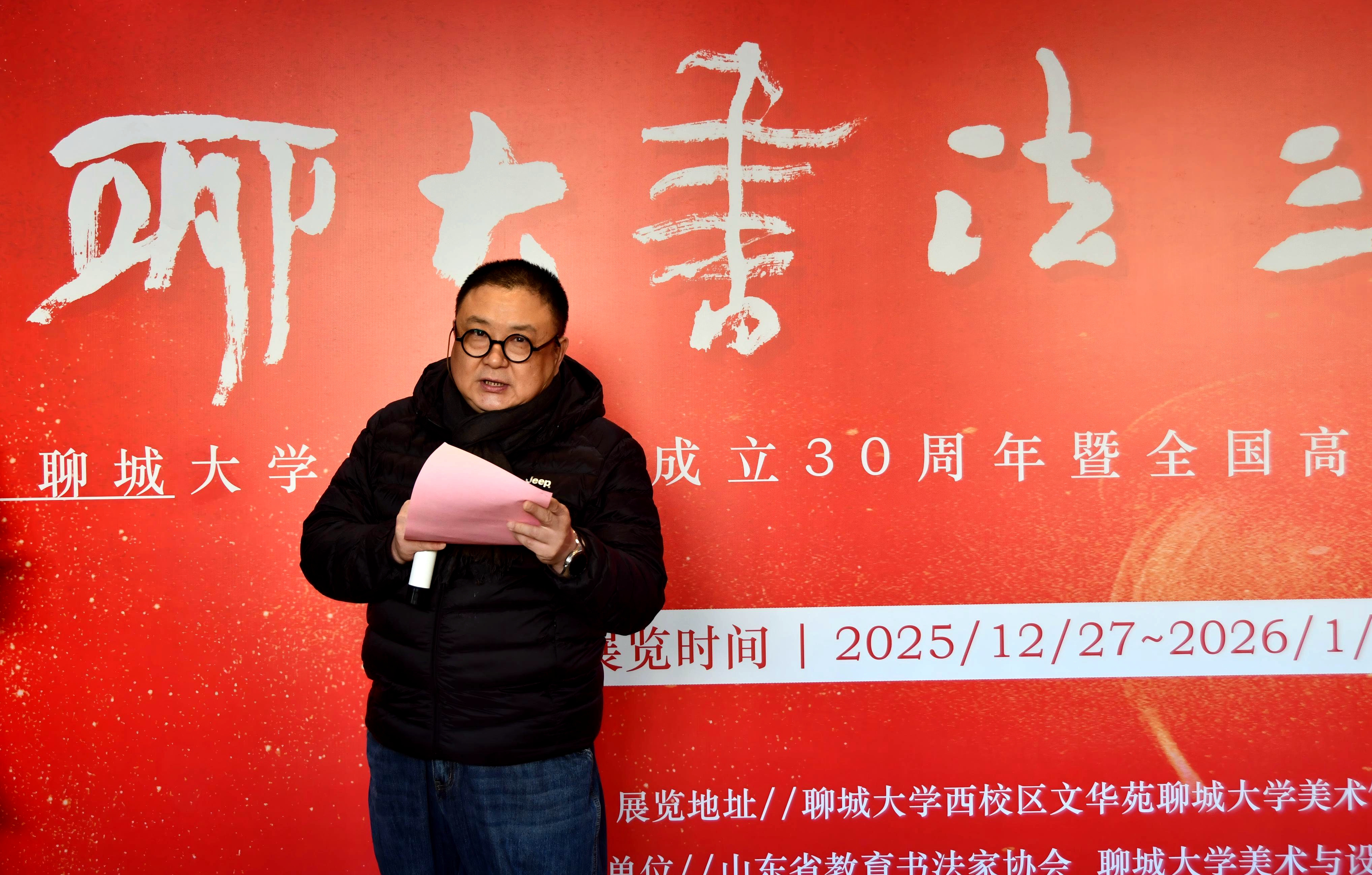 于茂阳首先致辞,回顾了聊城大学书法专业三十年的发展历程,对聊大书法专业坚守书法教育初心、培养大批书法人才的成果予以高度肯定,也寄语青年学子要深耕传统、勇于创新,让书法艺术在新时代焕发新活力。