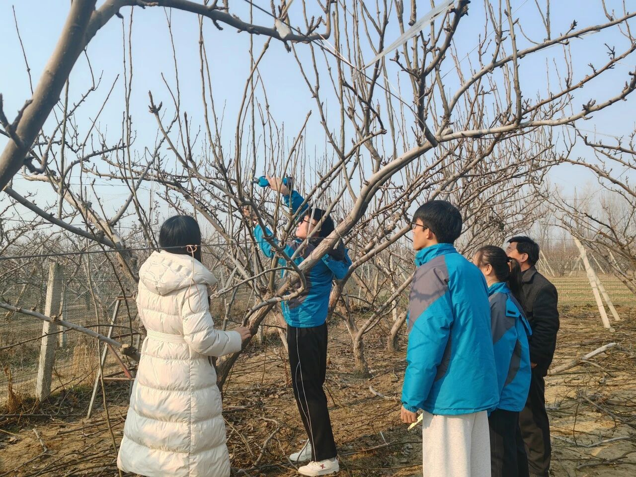 1月24日至25日,农业与生物学院“‘梨’想之光·科技兴农”实践团赴东阿县国家级黄金梨科技小院开展冬季专项帮扶。针对前期调研中农户反映的“冬季修剪技术薄弱、防寒效果不佳”等问题,团队抓住梨树休眠关键期,现场示范病枝、弱枝识别方法,演示“轻剪、疏剪结合”的修剪技法,并协助完成枯枝清理与树干防寒加固。队员还面向当地青少年开展科普宣讲,讲解倒春寒成因及智慧农业技术应用,激发对现代农业的兴趣。实践活动结束后,团队系统整理冬夏两季调研资料,分类汇总种植、管护、销售等环节的农户诉求,形成《东阿县北崔村黄金梨产业全链条升级分析报告》,为科技小院和地方合作社提供参考。此次实践聚焦生产一线真实需求,将技术服务、科普传播与产业调研相结合,推动帮扶从单次行动向持续支持延伸。