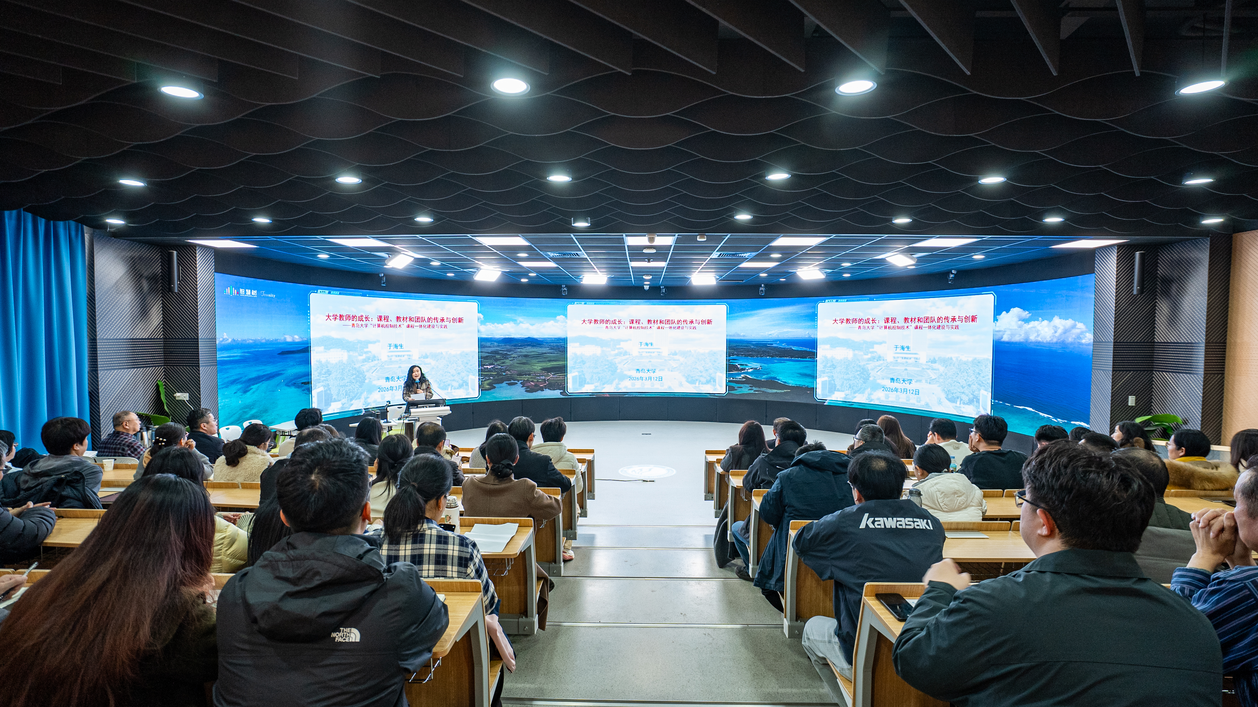 首批全国高校黄大年式教师团队负责人、全国教材建设奖优秀教材二等奖获得者、青岛大学首席教授于海生应邀作了题为“大学教师的成长:课程、教材和团队的传承与创新”的专题报告。他从教学学术、教材建设的重要意义,教材与课程融合建设讲起,并以《微型计算机控制技术》教材和课程建设为例分享了成功经验。