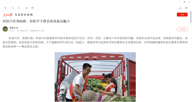 科技兴农,智慧引航。科技兴农就是把科学技术具体运用于农业、农村、农民,以解决三农中的实际问题,加快农业现代化步伐,加快新农村建设,加快农民增收。结合科技兴农的内涵,为了提高同学们知行合一的能力,增强同学们运用所学知识服务农业发展的觉悟,农学院暖阳服务队的志愿者开展探寻西瓜新品种——黄皮西瓜之旅。