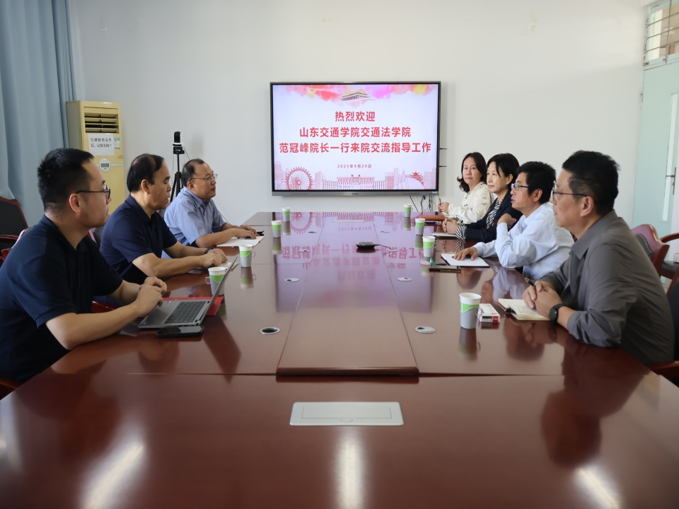 为深化校际交流合作,推动法学教育高质量发展,9月29日,山东交通学院交通法学院范冠峰院长一行来我校法学院交流座谈。聊城大学法学院党委书记季昌伟,院长杨道波,党委副书记、副院长刘洁,副院长刘海江出席此次座谈会。