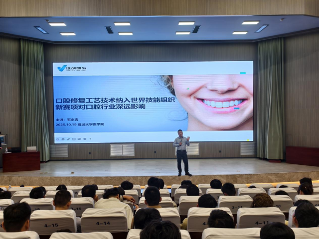 10月19日,医学院于实训楼报告厅举办口腔医学技术专业行业专家报告会,特邀维创数齿(上海)医疗技术有限公司创始人、总经理石永吉担任主讲人。口腔医学技术专业2025级与2024级全体学生参加,专业负责人马帅主持。
