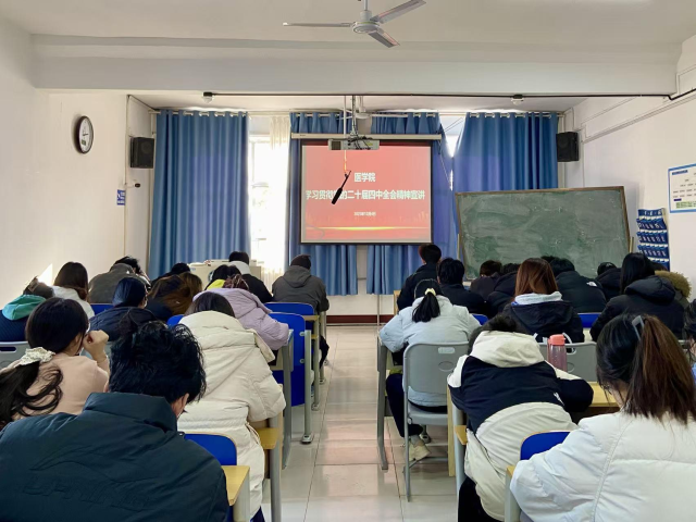 为深入学习贯彻党的二十届四中全会精神,强化青年医学生的理想信念教育,12月4日下午,医学院组织学习党的二十届四中全会精神主题党课培训,本次培训特邀中共中央编译局博士后、中国教育电视台“国培”名师、山东省优秀理论宣讲员秦正为进行宣讲,学生党支部书记白东芳主持本次培训,医学院共产党员和入党积极分子积极参与培训。