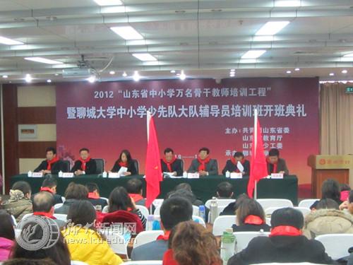 11月19日,由共青团山东省委、山东省教育厅以及山东省少工委主办,聊城大学承办的2012“山东省中小学万名骨干教师培训工程”暨聊城大学中小学少先队大队辅导员培训班开班典礼在我校东湖宾馆报告厅举行。我校党委副书记、校长马春林,党委常委、纪委书记孔祥华,共青团山东省委少年部部长曹奇伟以及共青团聊城市委、我校文学院和来自全省各地优秀少先队大队辅导员代表等参加开班典礼。