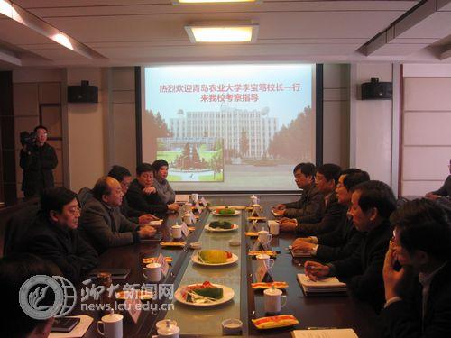 2月14日,我校党委书记李喆,党委副书记、校长马春林等校领导与青岛农业大学校长李宝笃一行在办公楼A111会议室进行座谈,双方围绕专业学科建设、人才引进、办学体制改革、后勤社会化改革、服务社会等话题进行了深入、细致的交流。